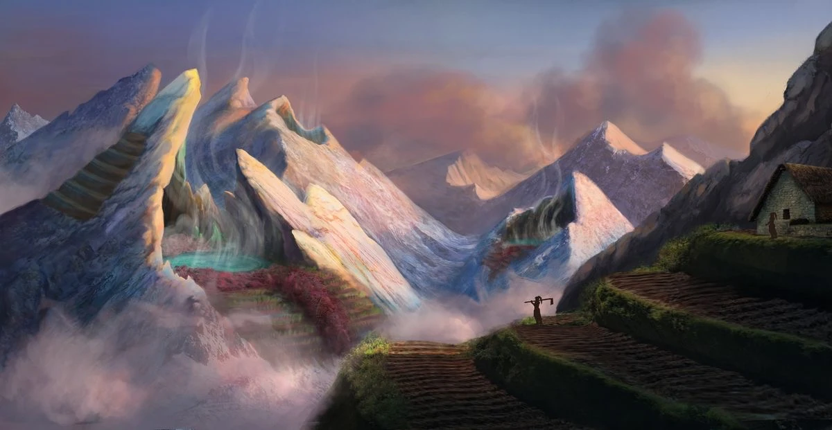 | “ | "The top of each mountain forms a kind of crater, which is filled with a large lake of warm water. The heat is enough to create a pocket of livable land, despite the altitude. Walk too far from one of the Horneater towns, though, and you'll end up in freezing temperatures and ice fields left by the highstorms." | ” |