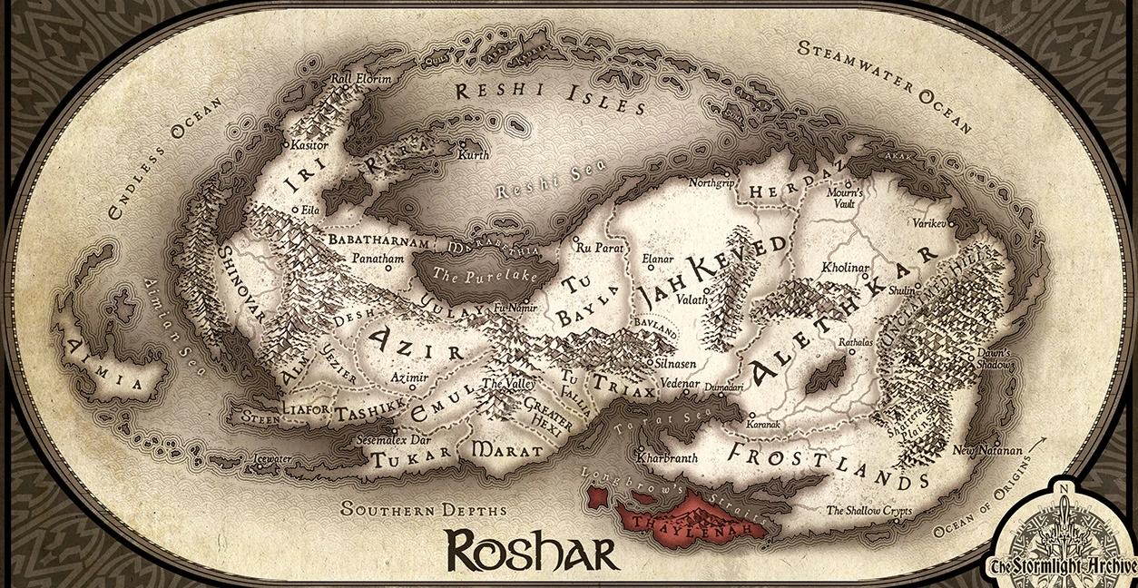 Thaylenah is an island nation separated from the Roshar mainland by Longbrows Straits. Thaylen people are renowned tradesman, merchants and sailors.
